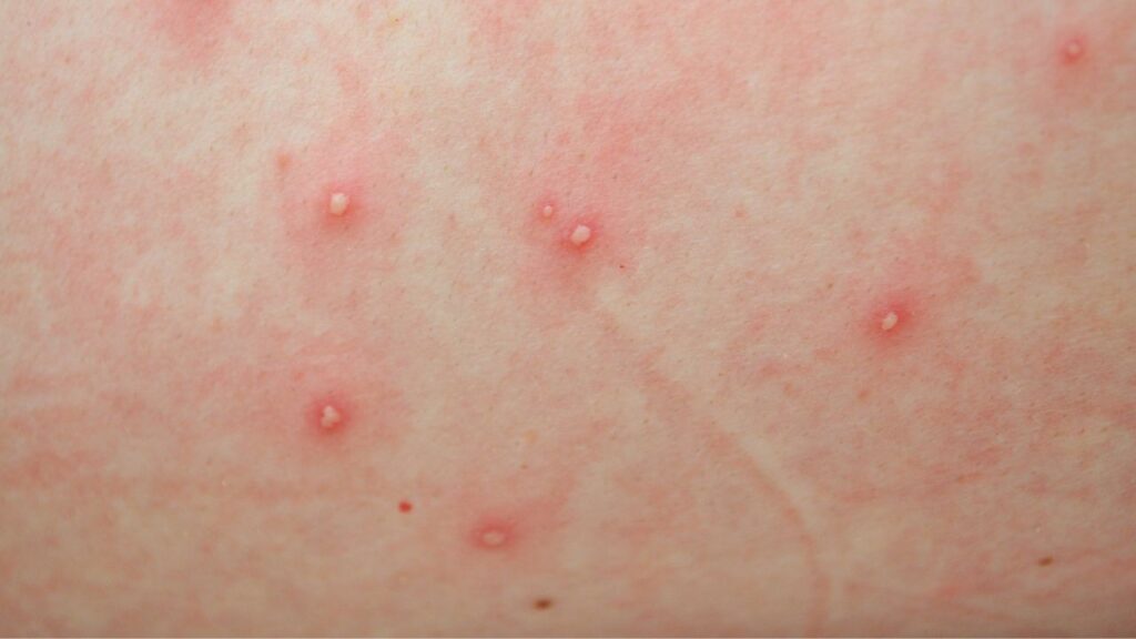5. Bintil Merah (Papula) – Munculnya bintil-bintil merah kecil menonjol di wajah, kepala, leher, menyebar ke seluruh tubuh.