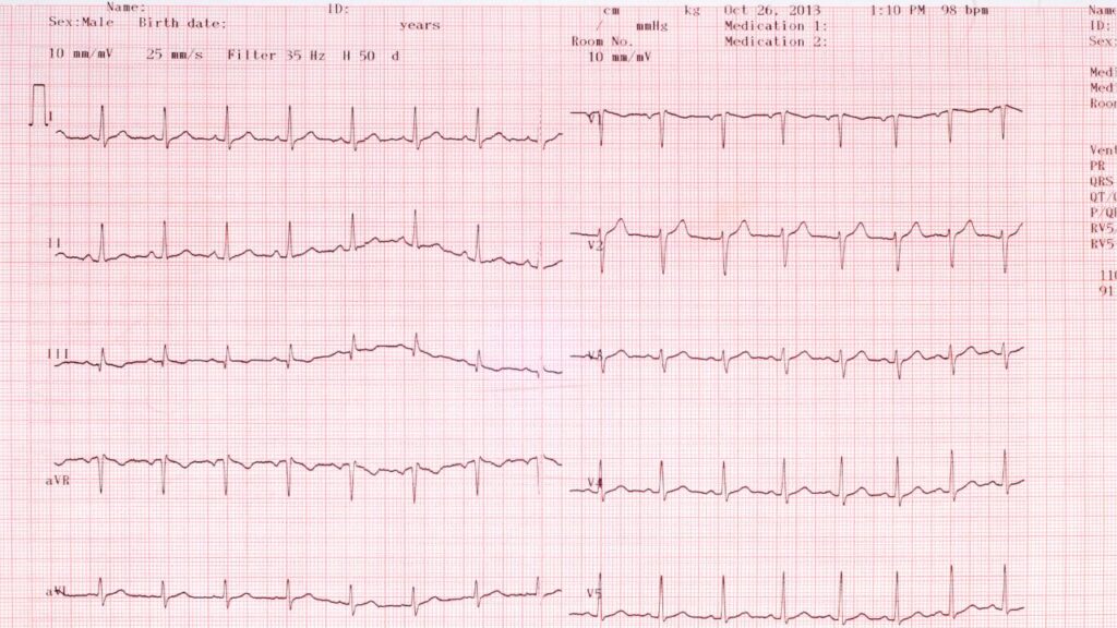 Elektrokardiogram atau EKG adalah pemeriksaan noninvasif yang merekam aktivitas listrik jantung. Setiap detak jantung dipicu oleh sinyal listrik yang dimulai dari nodus sinoatrial dan menyebar ke seluruh jantung, menyebabkan atrium dan ventrikel berkontraksi secara berurutan.