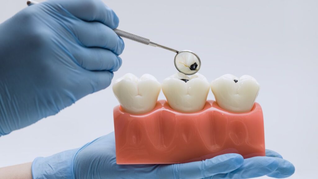 Bakteri dalam mulut menghasilkan asam yang mengikis lapisan enamel gigi, membentuk rongga atau kavitas yang menjadi pintu masuk kuman